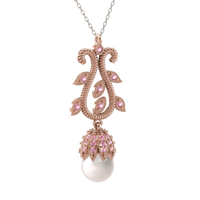 Inci ve pembe kuvars 14 ayar rose altın kolye (40 cm beyaz altın rolo zincir)