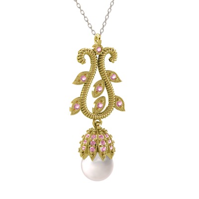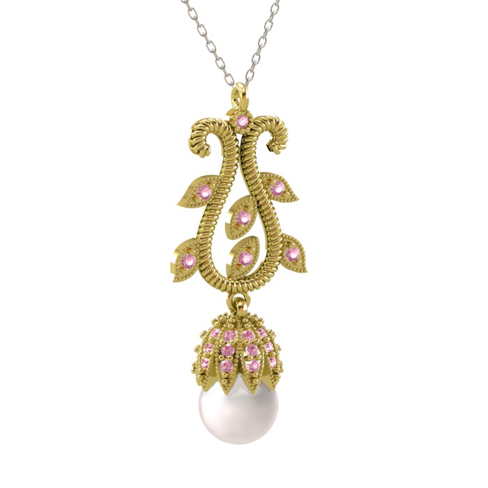 Inci ve pembe kuvars 8 ayar altın kolye (40 cm gümüş rolo zincir)