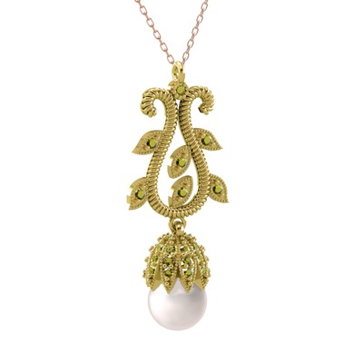 Inci ve peridot 18 ayar altın kolye (40 cm rose altın rolo zincir)