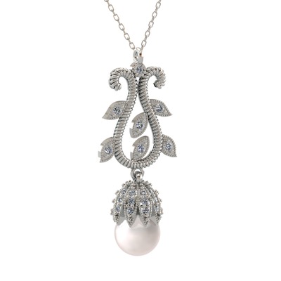 Inci ve pırlanta 14 ayar beyaz altın kolye (0.51 karat, 40 cm beyaz altın rolo zincir)