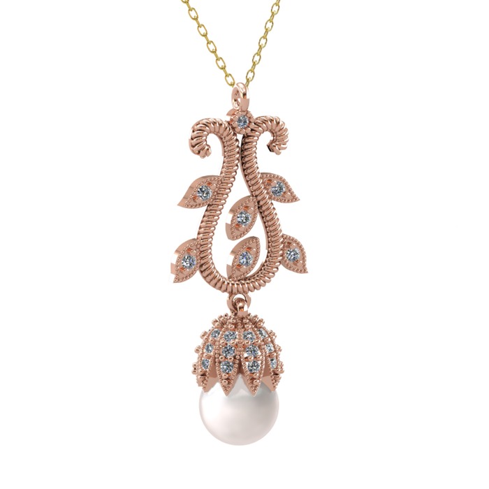 Inci ve pırlanta 8 ayar rose altın kolye (0.51 karat, 40 cm altın rolo zincir)