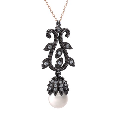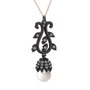 Inci ve pırlanta 925 ayar siyah rodyum kaplama gümüş kolye (0.51 karat, 40 cm rose altın rolo zincir)