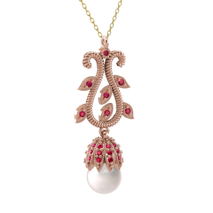 Inci ve rodolit garnet 14 ayar rose altın kolye (40 cm altın rolo zincir)