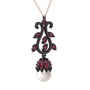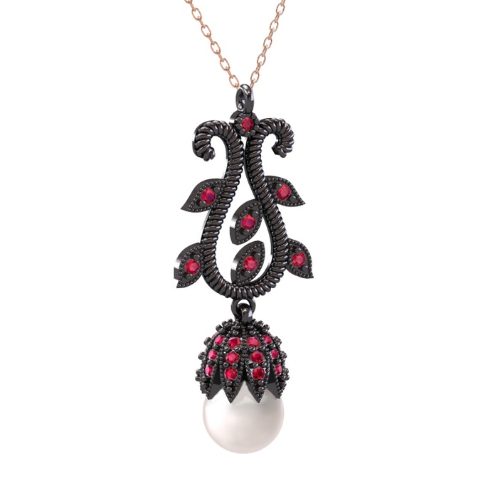 Inci ve rodolit garnet 925 ayar siyah rodyum kaplama gümüş kolye (40 cm rose altın rolo zincir)