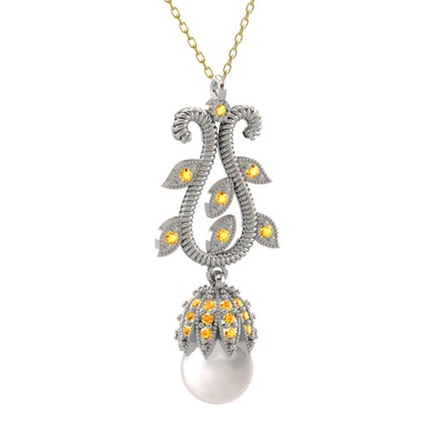 Inci ve sitrin 925 ayar gümüş kolye (40 cm altın rolo zincir)