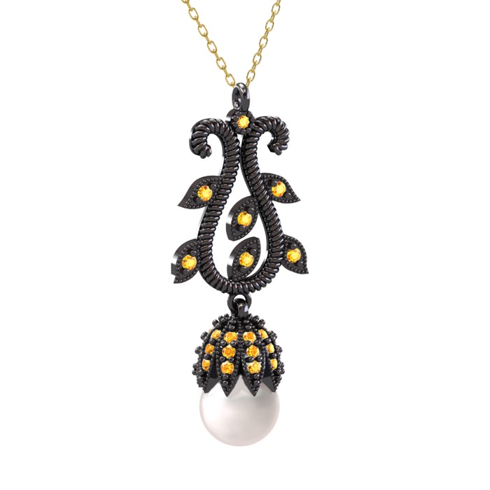 Inci ve sitrin 925 ayar siyah rodyum kaplama gümüş kolye (40 cm altın rolo zincir)