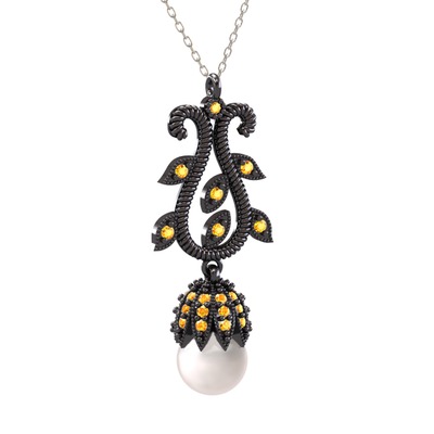 Inci ve sitrin 925 ayar siyah rodyum kaplama gümüş kolye (40 cm beyaz altın rolo zincir)