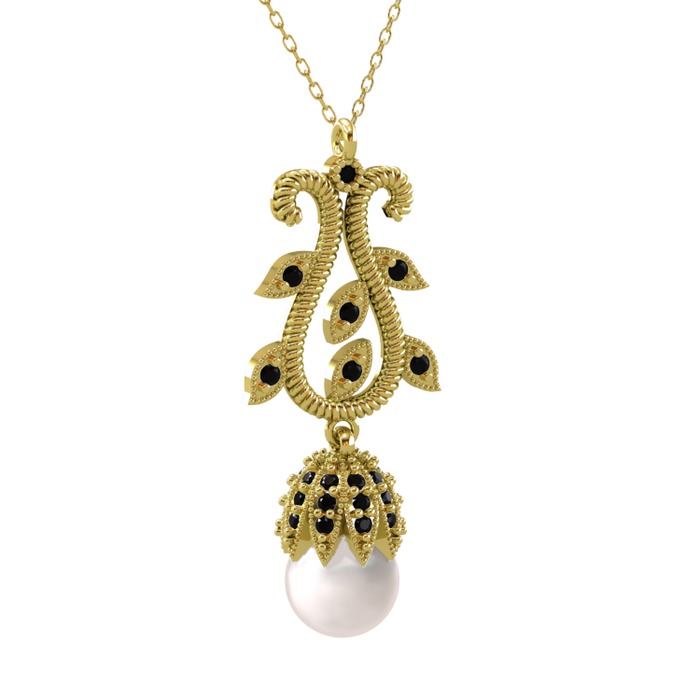 Inci ve siyah zirkon 14 ayar altın kolye (40 cm altın rolo zincir)