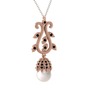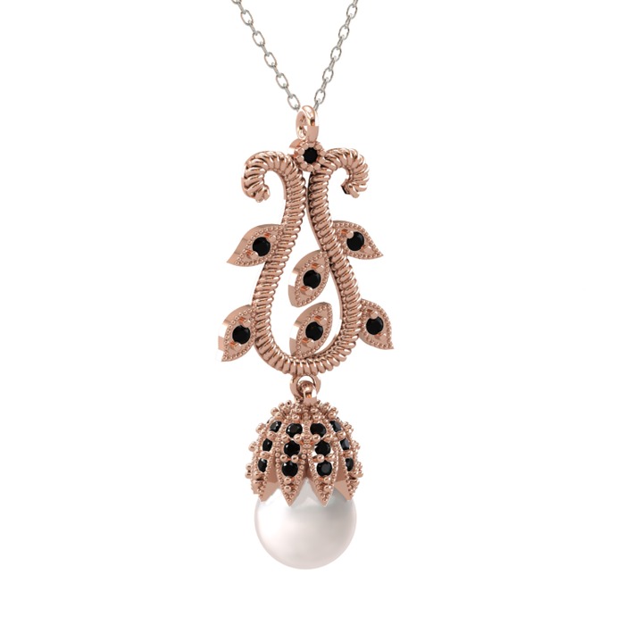Inci ve siyah zirkon 14 ayar rose altın kolye (40 cm beyaz altın rolo zincir)