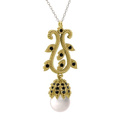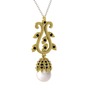 Inci ve siyah zirkon 18 ayar altın kolye (40 cm beyaz altın rolo zincir)