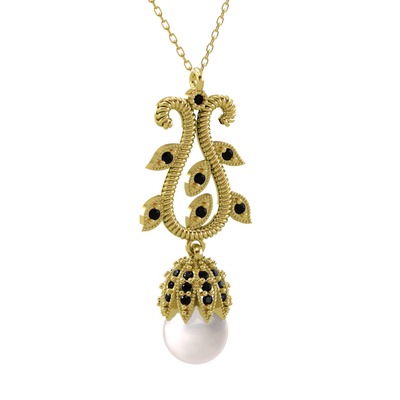 Inci ve siyah zirkon 8 ayar altın kolye (40 cm altın rolo zincir)