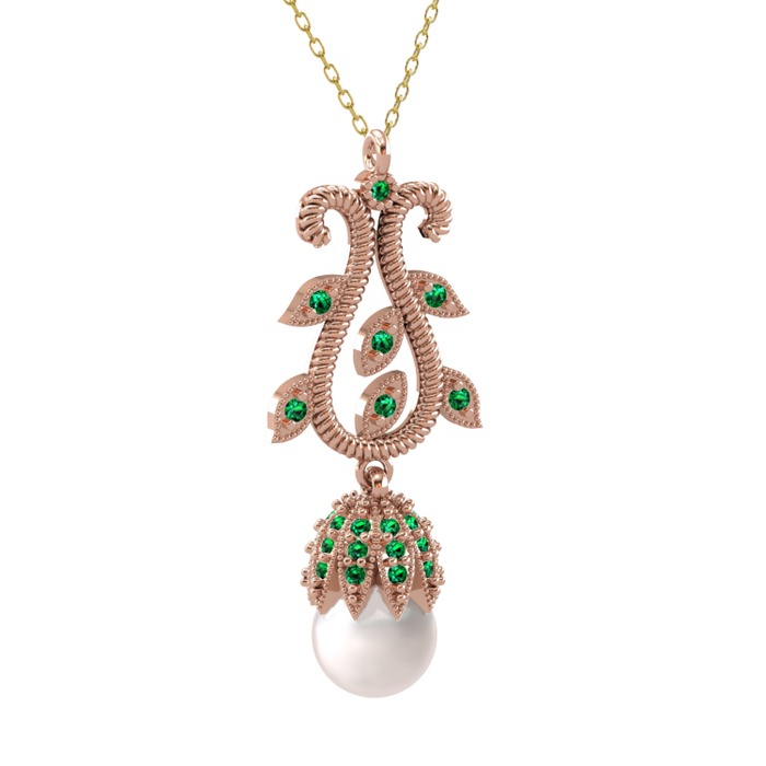 Inci ve yeşil kuvars 925 ayar rose altın kaplama gümüş kolye (40 cm altın rolo zincir)