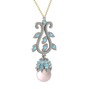 Pembe inci ve akuamarin 14 ayar beyaz altın kolye (40 cm altın rolo zincir)
