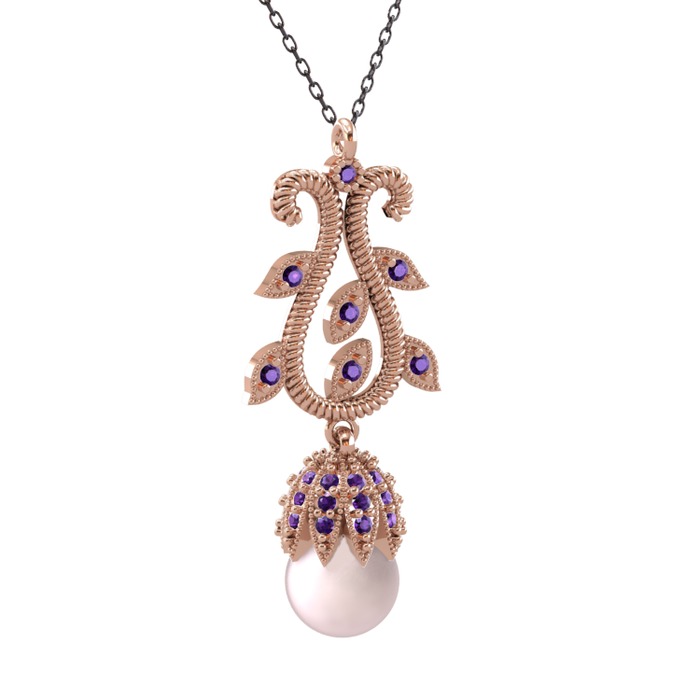 Pembe inci ve ametist 8 ayar rose altın kolye (40 cm gümüş rolo zincir)