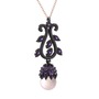 Pembe inci ve ametist 925 ayar siyah rodyum kaplama gümüş kolye (40 cm rose altın rolo zincir)