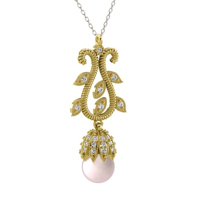 Pembe inci ve beyaz zirkon 14 ayar altın kolye (40 cm beyaz altın rolo zincir)