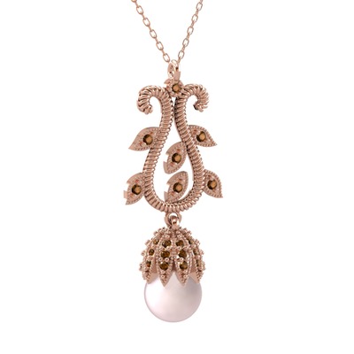 Pembe inci ve dumanlı kuvars 14 ayar rose altın kolye (40 cm rose altın rolo zincir)