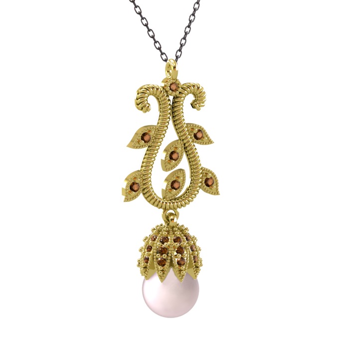 Pembe inci ve dumanlı kuvars 18 ayar altın kolye (40 cm gümüş rolo zincir)