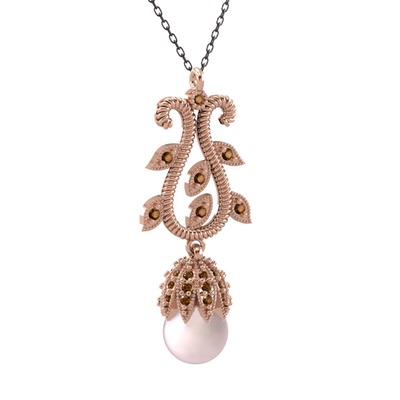 Pembe inci ve dumanlı kuvars 18 ayar rose altın kolye (40 cm gümüş rolo zincir)