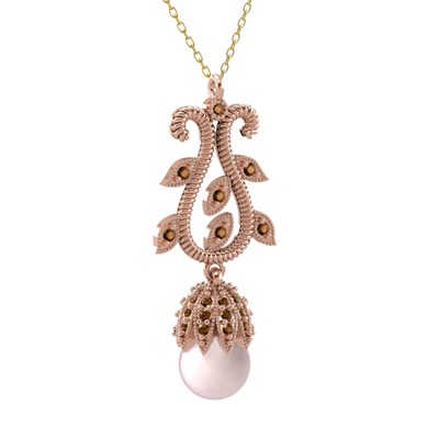 Pembe inci ve dumanlı kuvars 925 ayar rose altın kaplama gümüş kolye (40 cm gümüş rolo zincir)