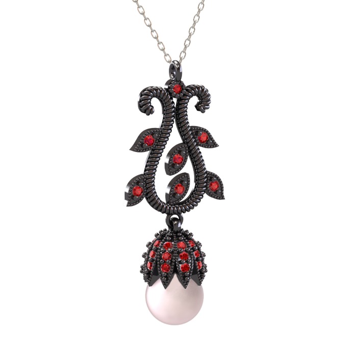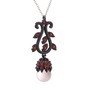 Pembe inci ve garnet 925 ayar siyah rodyum kaplama gümüş kolye (40 cm beyaz altın rolo zincir)