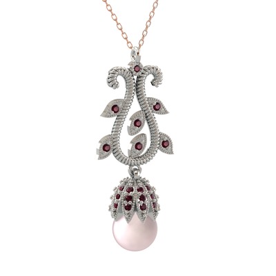 Pembe inci ve kök yakut 925 ayar gümüş kolye (40 cm rose altın rolo zincir)
