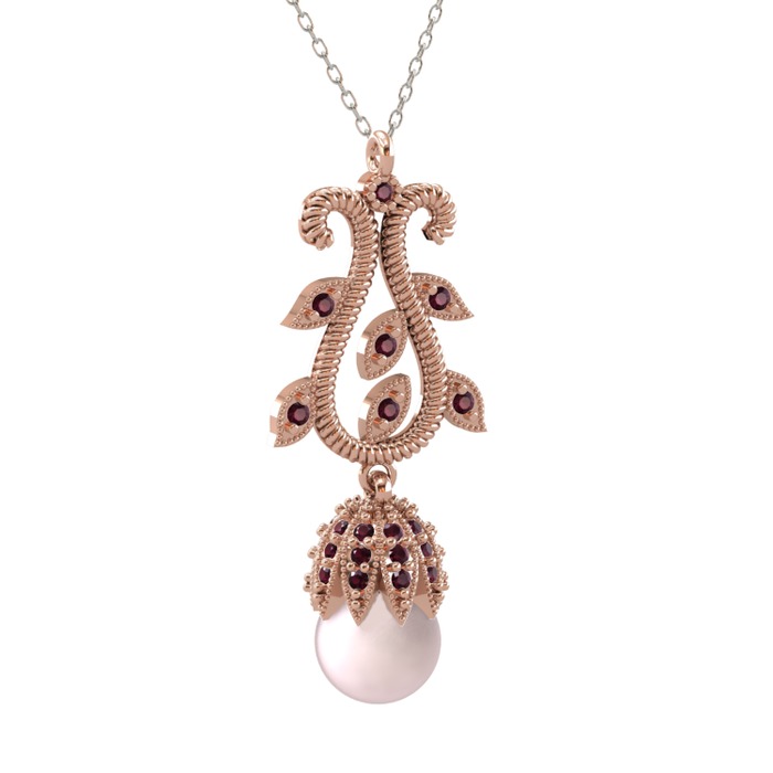 Pembe inci ve kök yakut 925 ayar rose altın kaplama gümüş kolye (40 cm gümüş rolo zincir)