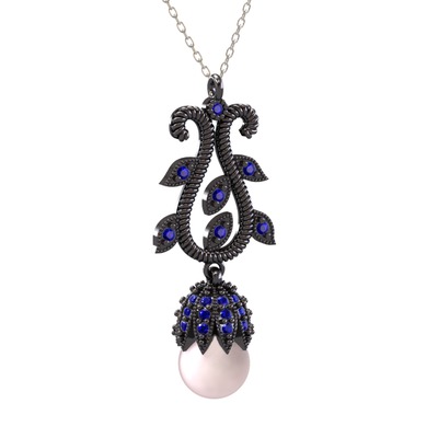 Pembe inci ve lab safir 925 ayar siyah rodyum kaplama gümüş kolye (40 cm gümüş rolo zincir)