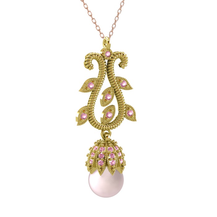 Pembe inci ve pembe kuvars 8 ayar altın kolye (40 cm rose altın rolo zincir)