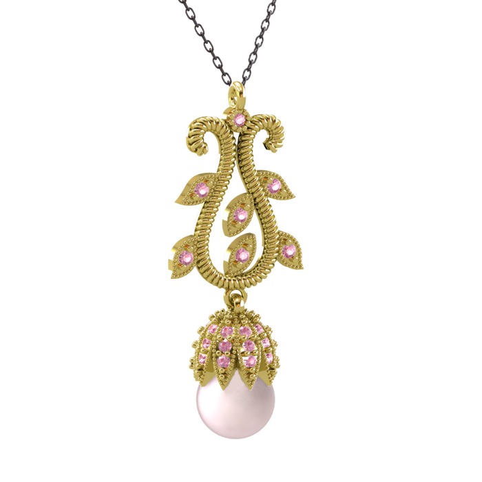 Pembe inci ve pembe kuvars 925 ayar altın kaplama gümüş kolye (40 cm gümüş rolo zincir)