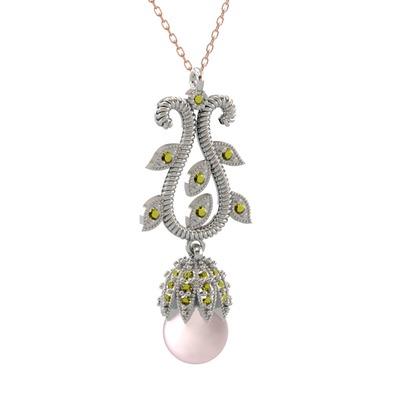 Pembe inci ve peridot 18 ayar beyaz altın kolye (40 cm rose altın rolo zincir)