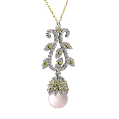Pembe inci ve peridot 8 ayar beyaz altın kolye (40 cm altın rolo zincir)