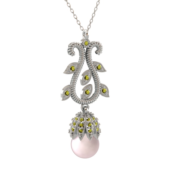 Pembe inci ve peridot 925 ayar gümüş kolye (40 cm gümüş rolo zincir)