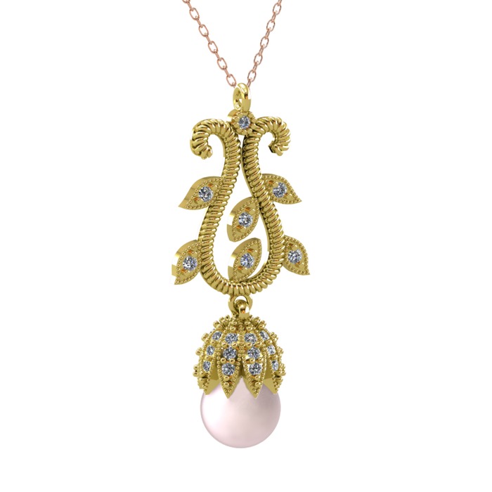Pembe inci ve pırlanta 18 ayar altın kolye (0.51 karat, 40 cm gümüş rolo zincir)