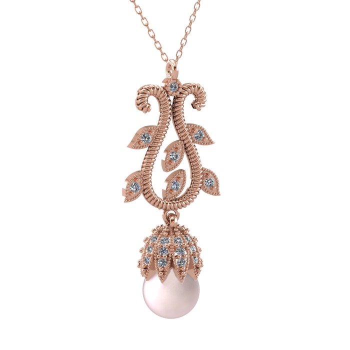 Pembe inci ve pırlanta 925 ayar rose altın kaplama gümüş kolye (0.51 karat, 40 cm rose altın rolo zincir)