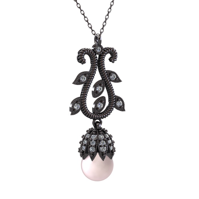 Pembe inci ve pırlanta 925 ayar siyah rodyum kaplama gümüş kolye (0.51 karat, 40 cm gümüş rolo zincir)