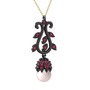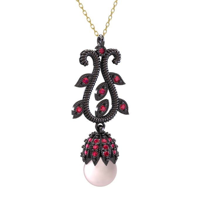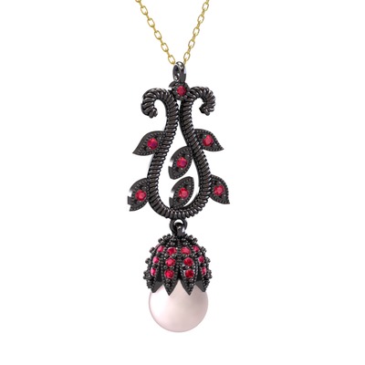 Pembe inci ve rodolit garnet 925 ayar siyah rodyum kaplama gümüş kolye (40 cm altın rolo zincir)
