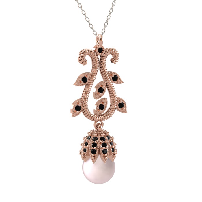 Pembe inci ve siyah zirkon 14 ayar rose altın kolye (40 cm beyaz altın rolo zincir)