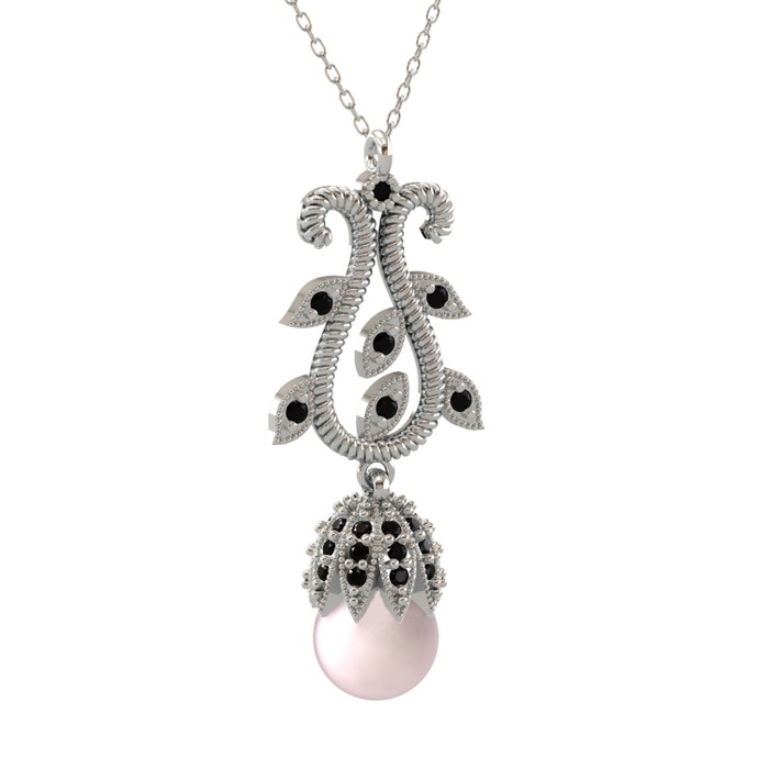 Pembe inci ve siyah zirkon 925 ayar gümüş kolye (40 cm beyaz altın rolo zincir)