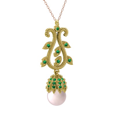 Pembe inci ve yeşil kuvars 18 ayar altın kolye (40 cm gümüş rolo zincir)