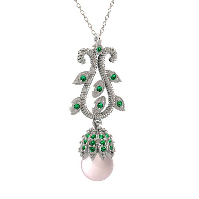 Pembe inci ve yeşil kuvars 8 ayar beyaz altın kolye (40 cm beyaz altın rolo zincir)