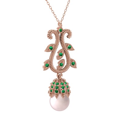 Pembe inci ve yeşil kuvars 8 ayar rose altın kolye (40 cm gümüş rolo zincir)