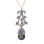 Siyah inci ve ametist 18 ayar beyaz altın kolye (40 cm altın rolo zincir)