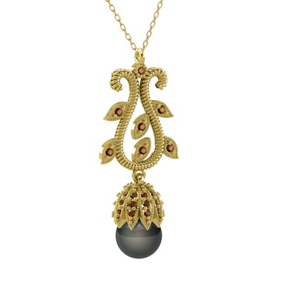 Siyah inci ve dumanlı kuvars 18 ayar altın kolye (40 cm altın rolo zincir)