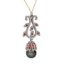 Siyah inci ve garnet 18 ayar beyaz altın kolye (40 cm altın rolo zincir)