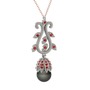 Siyah inci ve garnet 8 ayar beyaz altın kolye (40 cm rose altın rolo zincir)