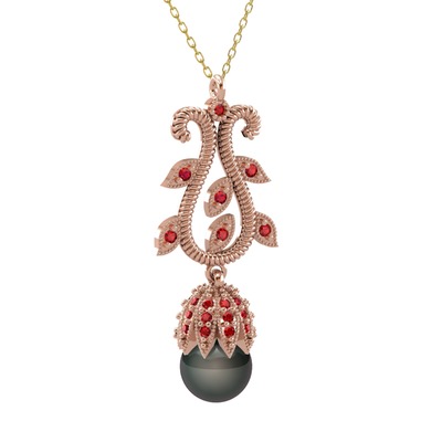 Siyah inci ve garnet 925 ayar rose altın kaplama gümüş kolye (40 cm altın rolo zincir)