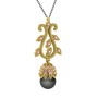 Siyah inci ve pembe kuvars 14 ayar altın kolye (40 cm gümüş rolo zincir)