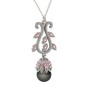 Siyah inci ve pembe kuvars 14 ayar beyaz altın kolye (40 cm beyaz altın rolo zincir)