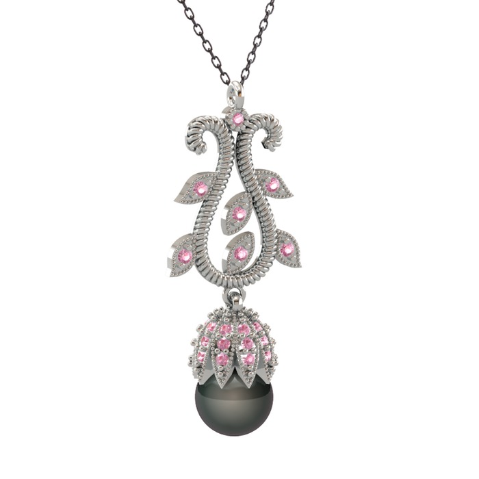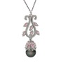 Siyah inci ve pembe kuvars 8 ayar beyaz altın kolye (40 cm gümüş rolo zincir)